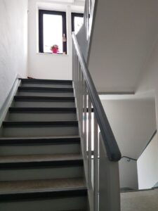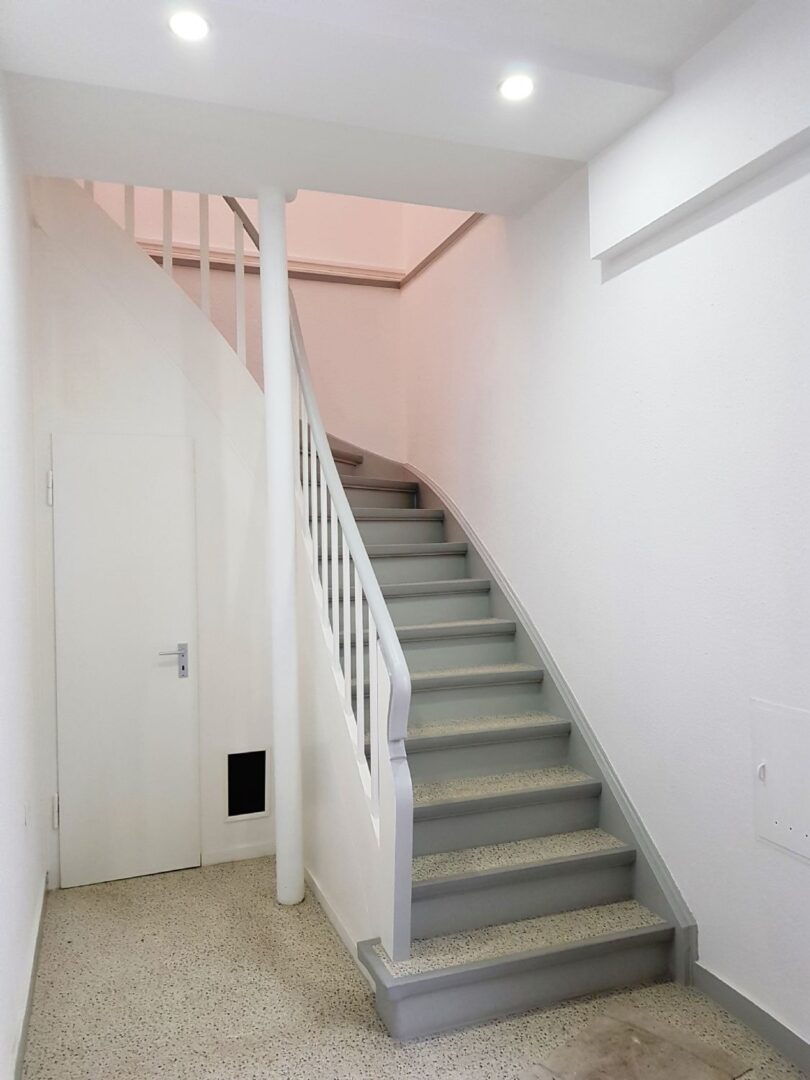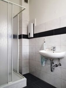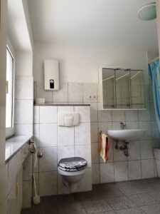 Über den separaten Eingang des teilunterkellerten Mittelhauses kommt man zu einer Wohneinheit von ca. 36 m² mit Duschbad.