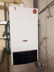 Vorderhaus und Mittelhaus teilen sich ein Gasbrennwertgerät aus dem Jahr 2010, das Hinterhaus hat ein separates Gasbrennwertgerät aus dem Jahr 2016, beide Geräte sind von der Fa. Wolf.